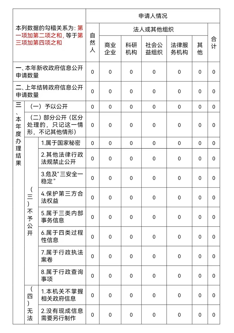 2024年收到政府信息公開申請(qǐng)0件,處理政府信息公開申請(qǐng)0件,全年信息公開類行政復(fù)議0件,訴訟0件。
